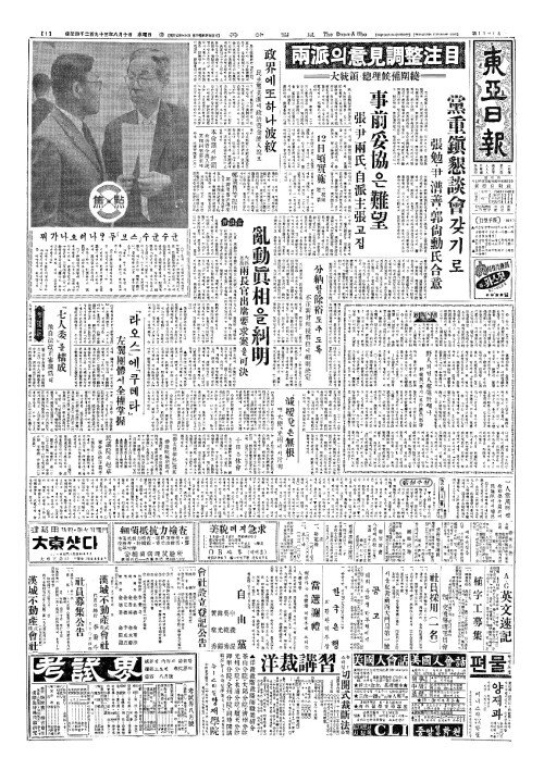 - 兩派(량파)의意見調整注目(의견조정주목) 大統領(대통령)·總理候補圍繞(총이후보위요)