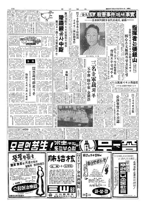 - 金九先生(김구선생) 殺害事件(살해사건)에 새 事實(사실) 眞相糾明鬪爭委代表咸氏(진상규명투쟁위대표함씨)、暴露(폭로)