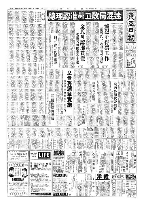 - 總理認准(총리인준)싸고政局混迷(정국혼미)