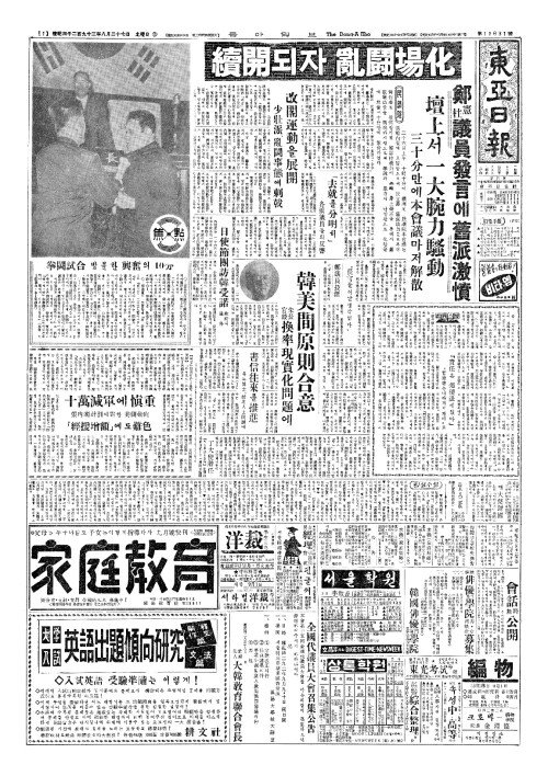 - 不詳事(부상사)없기를 張總理(장총이)、國會亂鬪(국회난투)에 遺憾表明(유감표명)