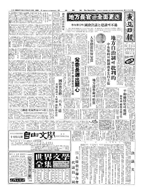 - 民議院地方長官直選與否(민의원지방장관직선여부)싸고 新(신)·舊派(구파)다시對決(대결)