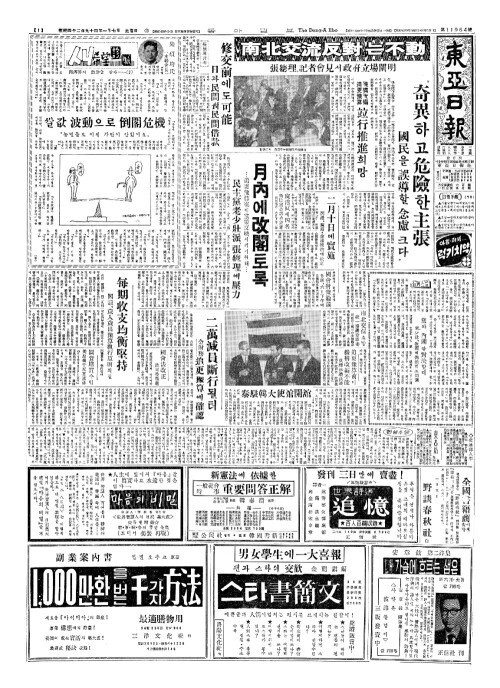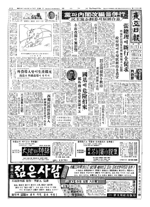- 全面改閣(전면개각)엔無影響(무영향) 洪議員談(홍의원담)