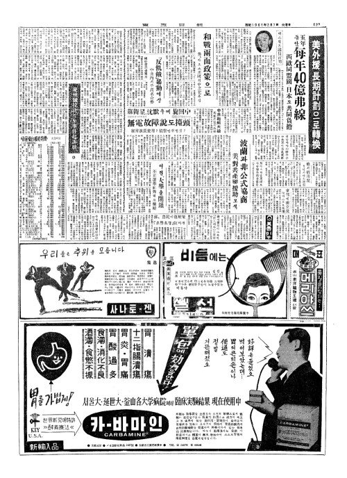 - 포드財團(재단) 低開發國援助(저개발국원조) 五百萬弗增額(오백만불증액)