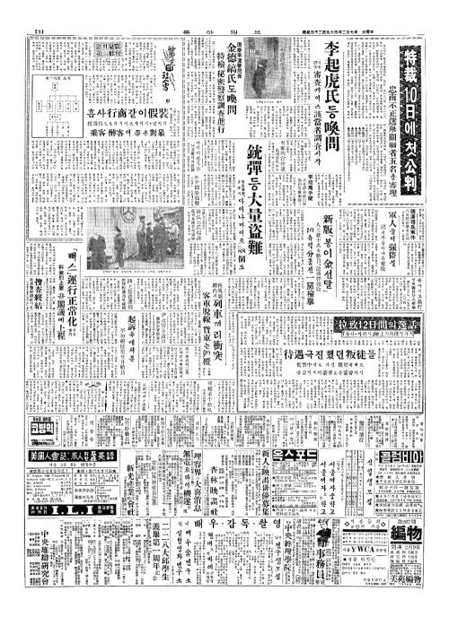 - 特裁(특재)、10日(일)에 첫公判(공판)