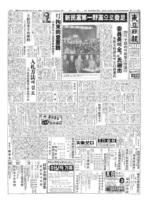 - 新民黨第一野黨(신민당제일야당)으로發足(발족)