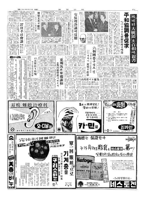 - 케네디大統領(대통령)、흐首相(수상)에親書(친서)
