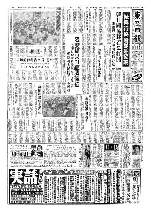 - "經濟協定對日政策(경제협정대일정책) 失策(실책)으로안본다 張總理(장총리)「鄭外務罷免(정외무파면)」의反對表明(반대표명) 重石事件(중석사건) 檢察(검찰)서黑白(흑백)밝힐터"
