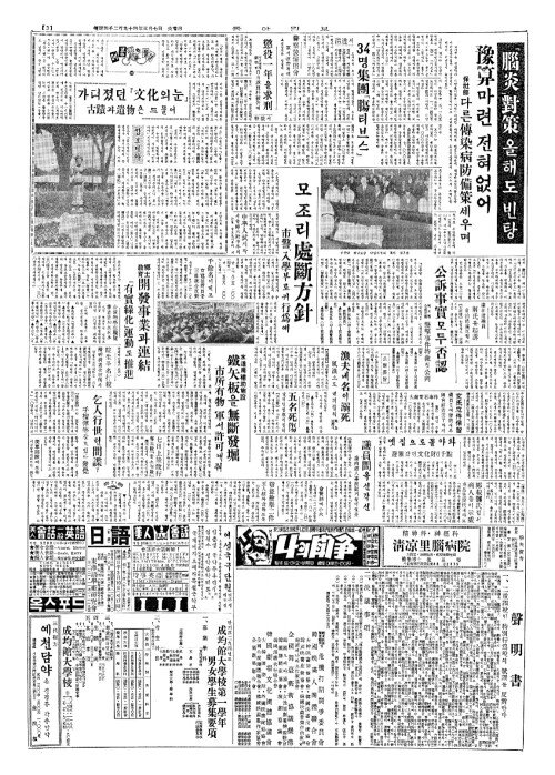 - 「腦炎(뇌염)」對策(대책)올해도빈탕 豫算(예산)마련 전혀없어
