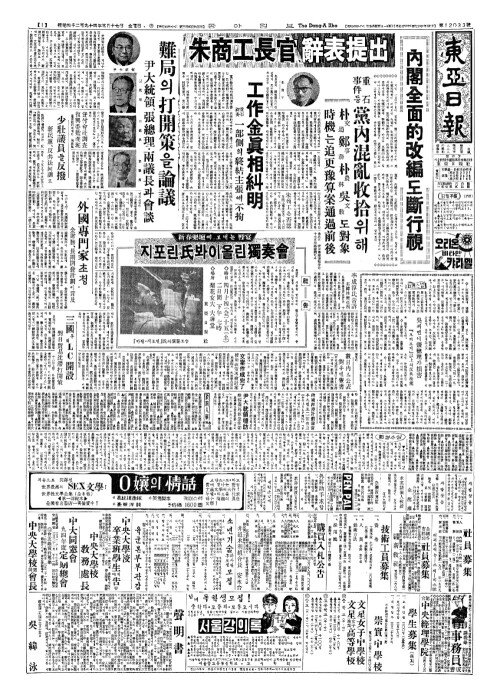 - 吳(오)씨땜에張總理(장총리)가損害(손해)『보리고개』以上(이상)의反共法案(반공법안)