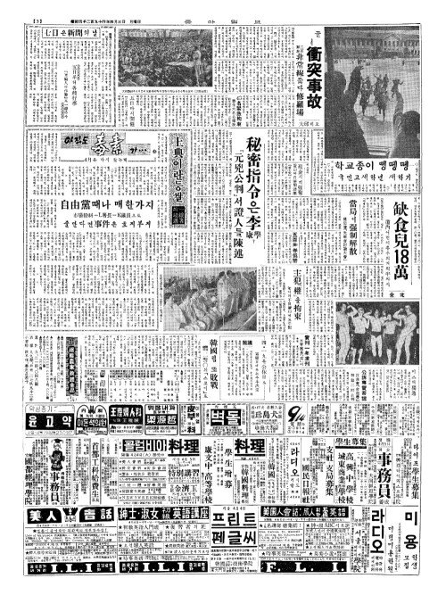 - 本社接受(본사접수) 絕糧農家救護金品(절량농가구호김품) (3日上午(일상오))
