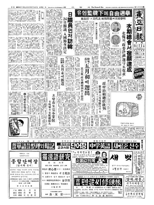 - "유엔監視下(감시하)에 自由選擧(자유선거)"