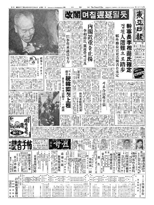 - 幹事長(간사장)의國務(국무) 委員兼職反對(위원겸직반대) 吳(오)·李兩議員言明(이양의원언명)