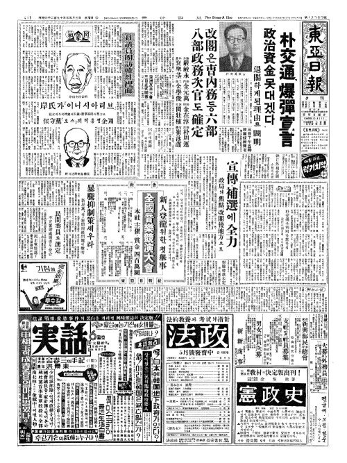 - 三日下午五時(삼일하오오시) 改閣發表豫定(개각발표예정)