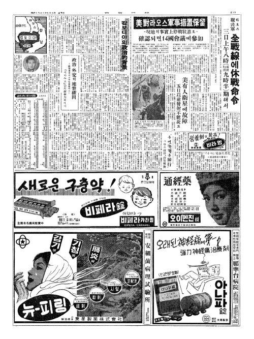 - 라오스親共軍(친공군) 全戰線(전전선)에休戰命令(휴전명영)