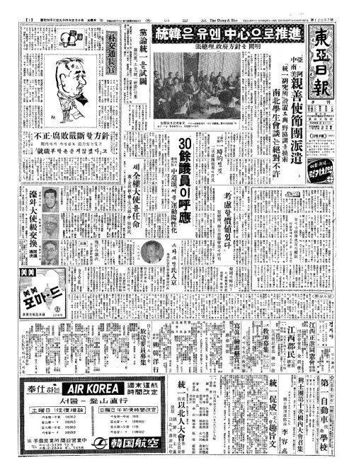 - 統韓(통한)은「유엔」中心(중심)으로推進(추진) 張總理(장총리)、政府方針(정부방침)을 闡明(천명)