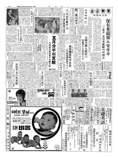 - 五月分(오월분)부터支給(지급) 閣議(각의)서決定(결정)