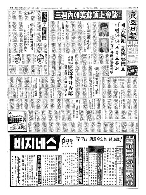 - 케네디、蘇大使(소대사)와會談(회담) 『흐』首相(수상)의親書接受(친서접수)?