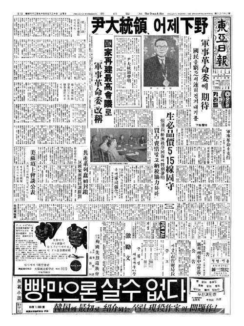 - "最高會議支持(최고회의지지) 民主主義早速回復確信(민주주의조속회복확신)" 滯美宋堯讃將軍聲明(체미송요찬장군성명)