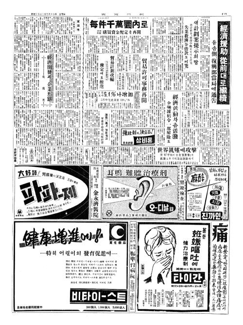 - 經濟援助(경제원조) 從前(종전)대로繼續(계속) 유솜側(측)、復興部當局(복흥부당국)에通吿(통고)