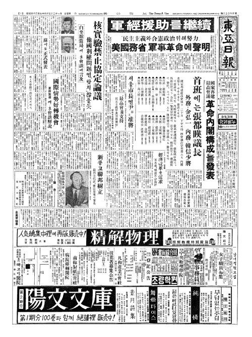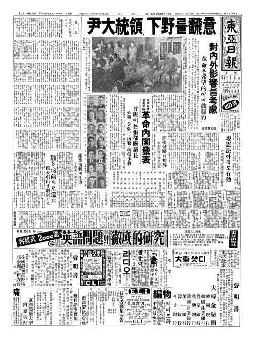 - 國家再建(국가재건) 最高會議(최고회의) 革命內閣構成(혁명내각구성)을發表(발표)