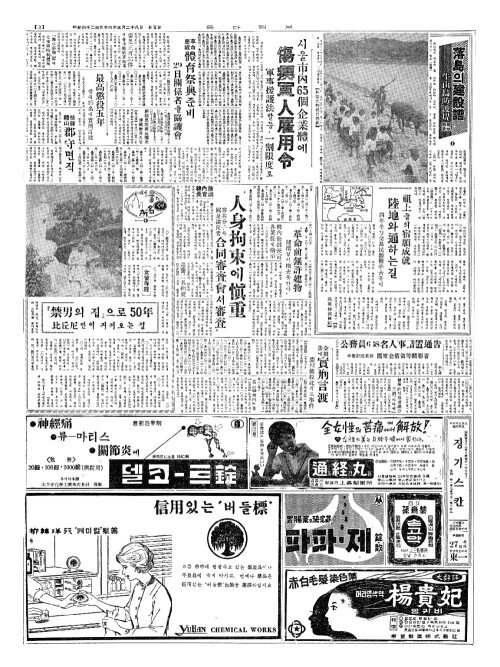 - 서울市內(시내)65個企業體(개기업체)에 傷痍軍人雇用令(상이군인고용령)