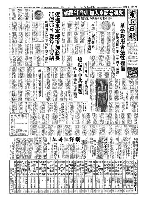 - "近(근)·極東軍援增加必要(극동군원증가필요)20億弗(억불)의 豫算(예산)을要請(요청)"