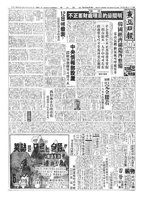 - [社說(사설)] 國家再建最高會議法等三法(국가재건최고회의법등삼법)의 公布(공포)