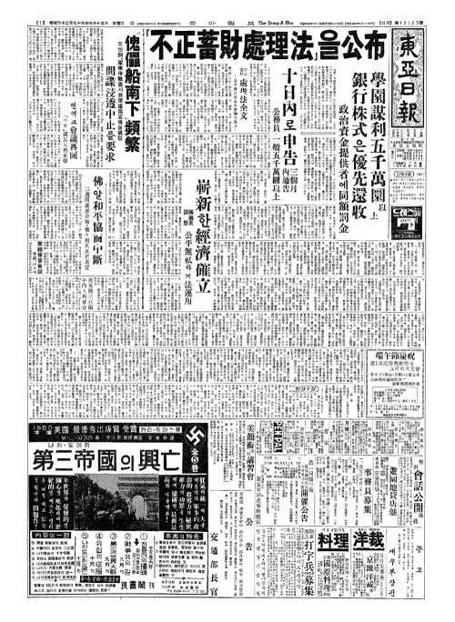 - 農村高利債整理委(농촌고리채정리위) 14日(일)부터構成着手(구성저수)