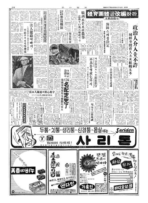 - 「體育團體(체육단체)곧改編(개편)하라」文敎部指示(문교부지시)