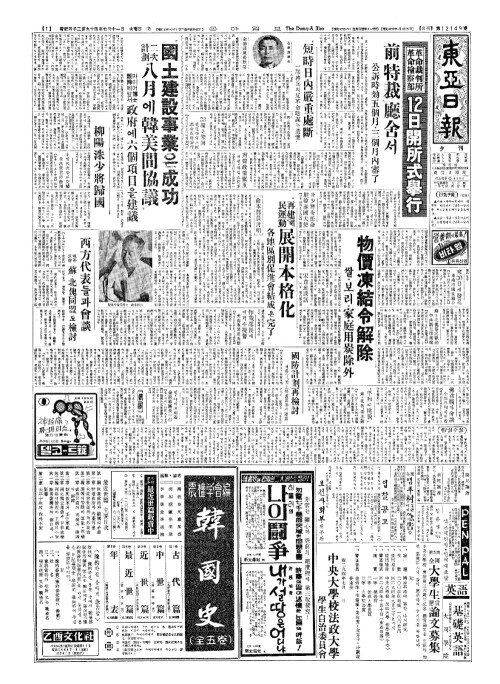 - "國土建設事業(국토건설사업)은成功(성공) 二次計劃(이차계획) 八月(팔월)에韓美間協議(한미간협의)"