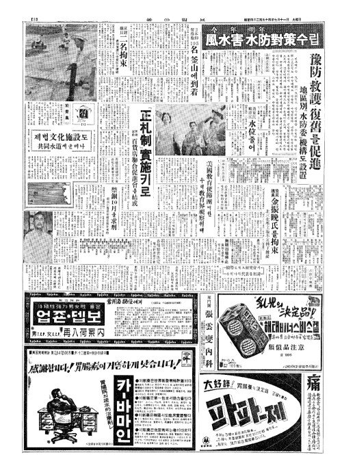 - 水害死亡者遺族(수해사망자유족)에 五萬圜(오만원)씩傳達(전달)