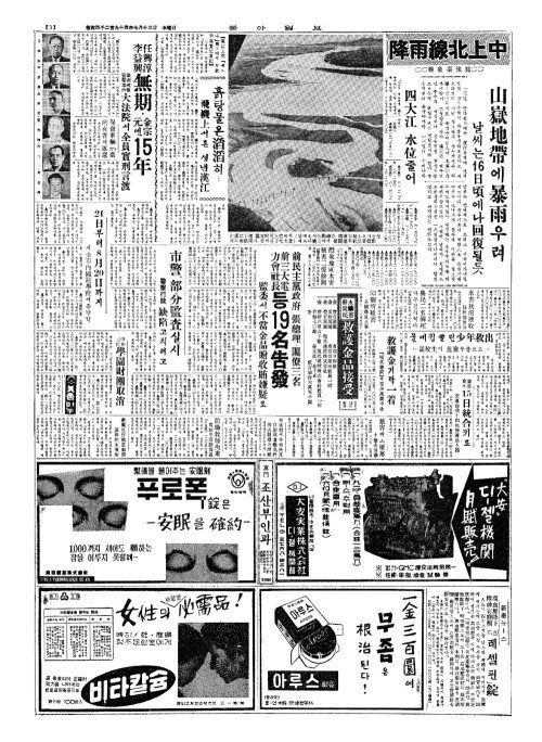 - 醴泉地區水害(례천지구수해) 被害二億餘圜(피해이억여원)