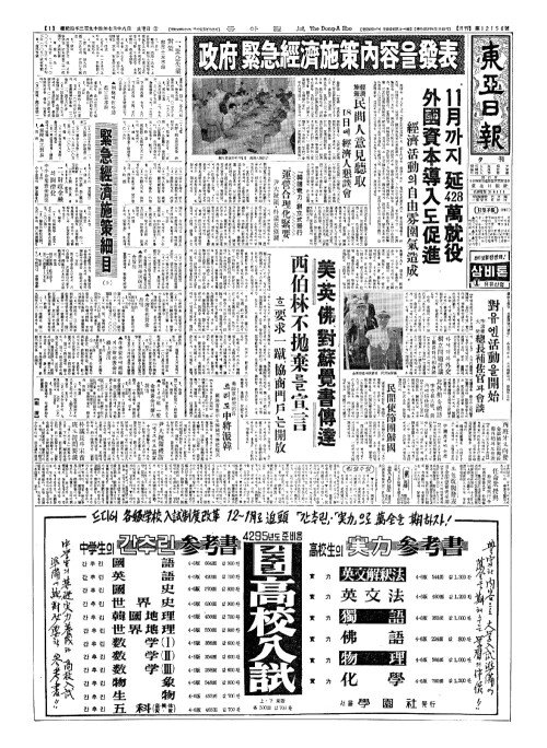 - 美(미)·英(영)·佛(불)、對蘇覺書傳達(대소각서전달) 西伯林不抛棄(서백임부포기)를宣言(선언)