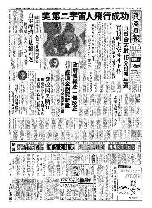 - 美(미)、第二宇宙人飛行成功(제이우주인비행성공)