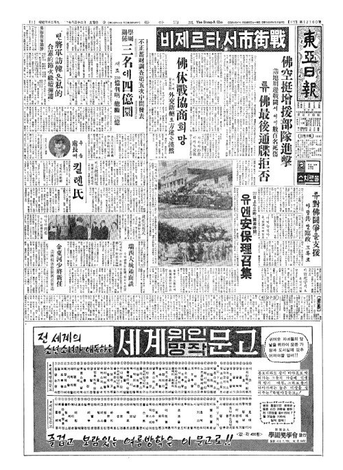 - 國民總動員(국민총동원)을呼訴(호소) 부르기바 大統領放送(대통영방송)"外國義勇軍歡迎(외국의용군환영)"