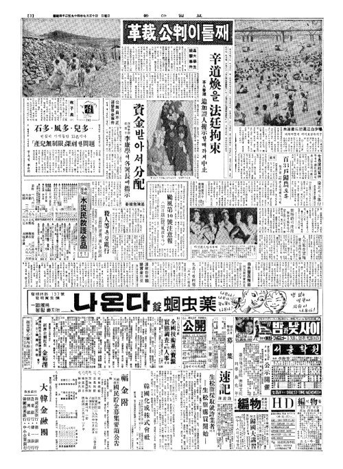 - 本社接受(본사접수) 水災民救護金品(수재민구호김품) 30日上午(일상오)