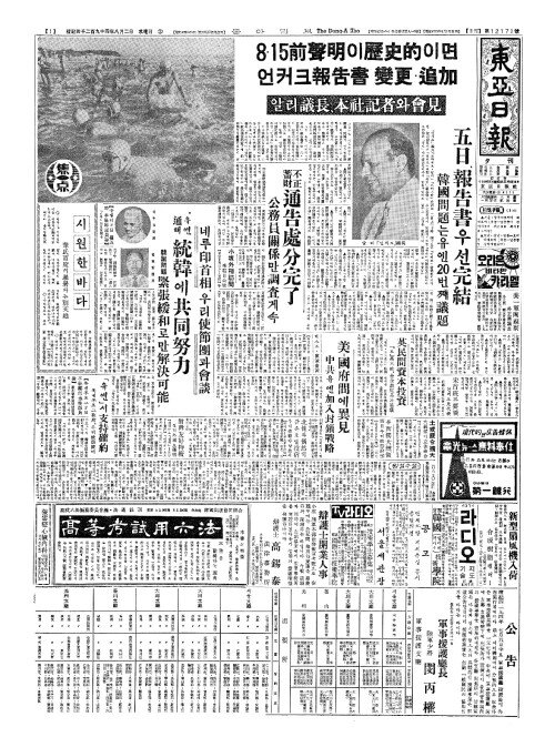- 8·15前聲明(전성명)이歷史的(역사적)이면 언커크報吿書(보고서) 變更(변경)·追加(추가)
