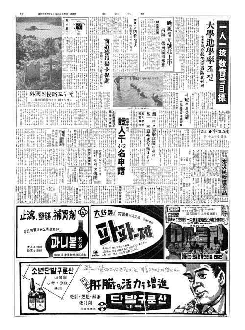 - 本社接受(본사접수) 水災民救護金品(수재민구호금품)1日下午分(일하오분)