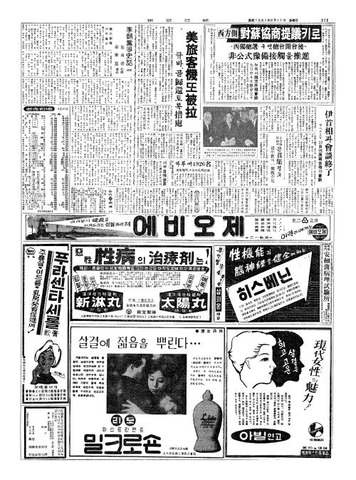 - 英旅客機一臺失踪(영여객기일대실종) 36名(명)의學童(학동)태우고