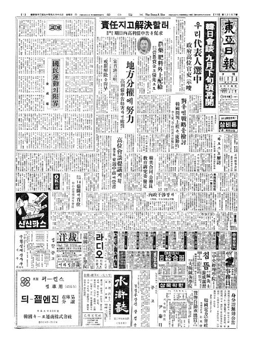- 韓日會談(한일회담) 九月下旬頃再開(구월하순경재개)
