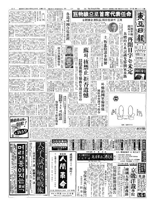 - 人類(인류)에부디친 마지막『챤스』 네루、核禁止力說(핵금지력설)