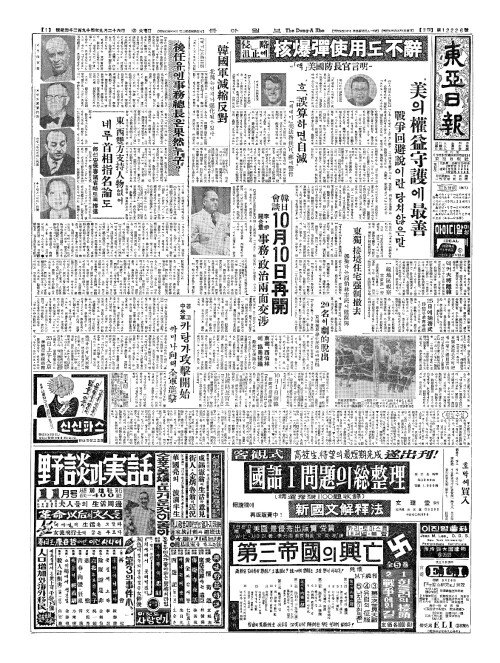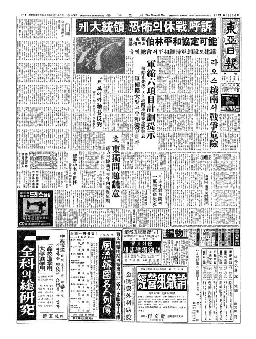 - "『트로이카』總長反對(총장반대) 蘇(소)는平和(평화)의殿堂(전당)서도冷戰激化(랭전격화)"
