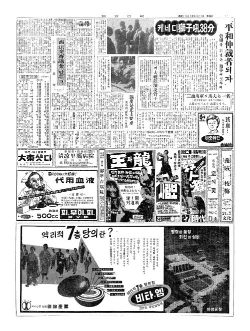 - [社說(사설)] 平和維持(평화유지)를 呼訴(호소)하는 『케네디』美國大統領(미국대통령)