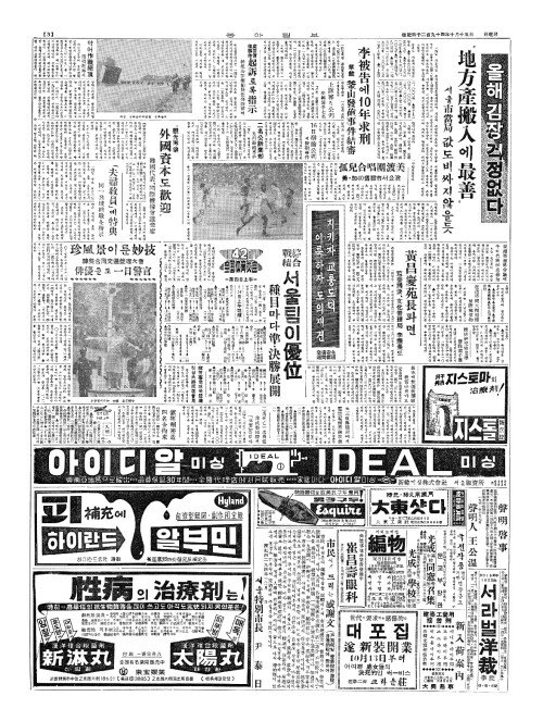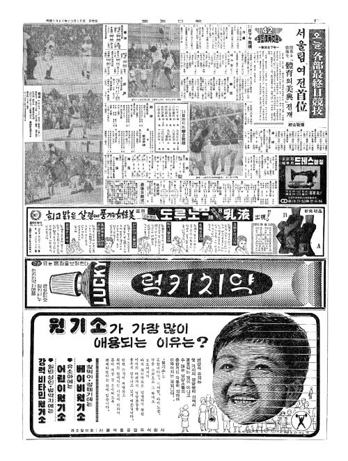 - 42回(회) 全国体育大会(전국분육대회) =第四日上午(제사일상오)= 综合(종합) 戰績(전적) 서울팀이優位(우위)