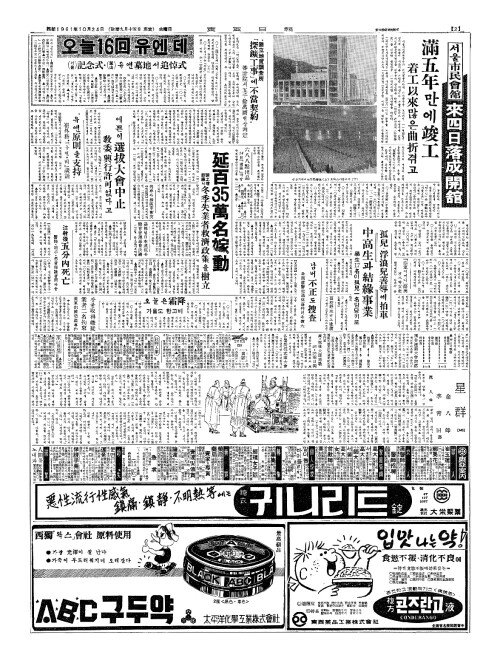 - 서울市民會舘來四日落成開舘(시민회관래사일락성개관)