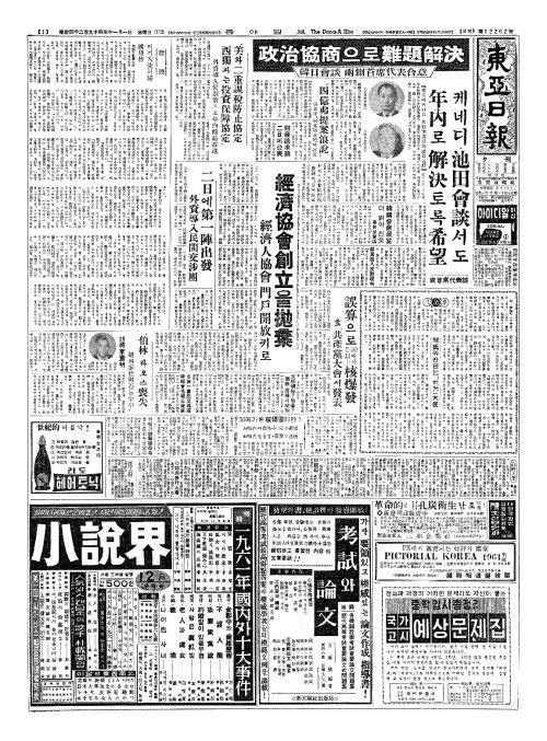 - "華府(화부)에서國際情勢討議(국제정세토의) 韓國政府五個年經濟計劃(한국정부오개년경제계획)등"