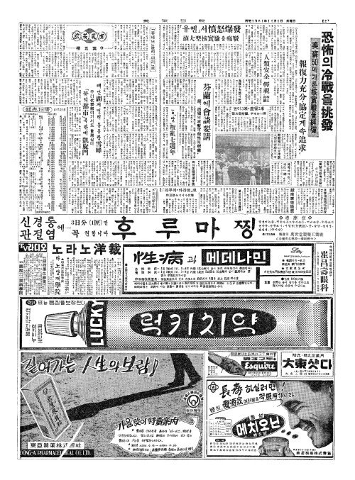 - "恐怖(공포)의冷戰(랭전)을挑發(도발) 美(미)、蘇(소)50메가톤核實驗(핵실험)을糾彈(규탄) 報復力充分(보복력충분)·協定(협정)계속追求(추구)"