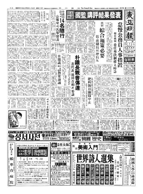 - 朴議長訪日(박의장방일) 數日(삭일)앞두고 池田內閣(지전내각) 意見調整(의견조정)에奔忙(분망)