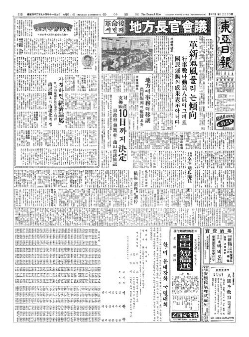 - [社說(사설)] 地方長官會議(지방장관회의)에寄(기)한다