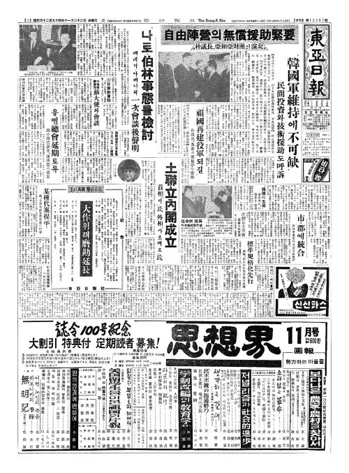 - 自由陣營(자유진영)의無償援助緊要(무상원조긴요) 朴議長(박의장)、亞細亞財團(아세아재단)서演說(연설)